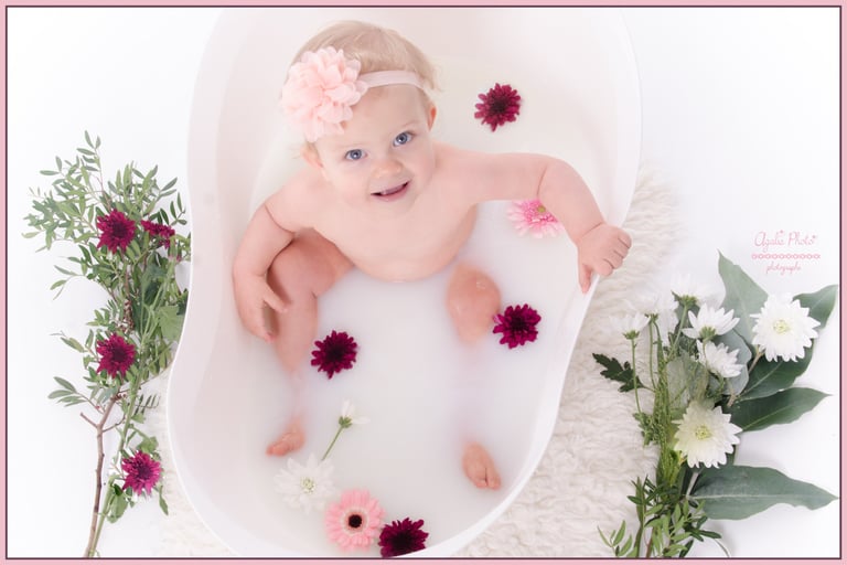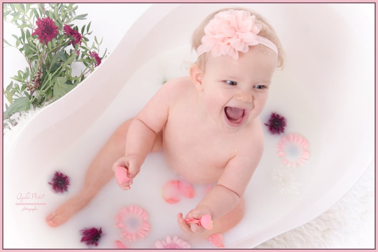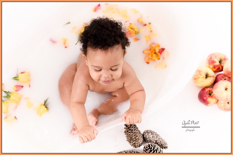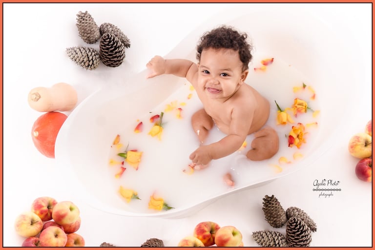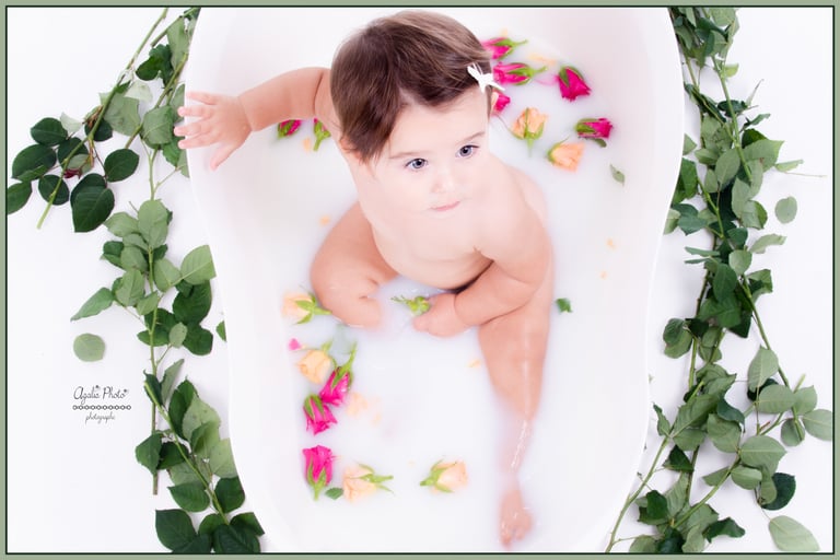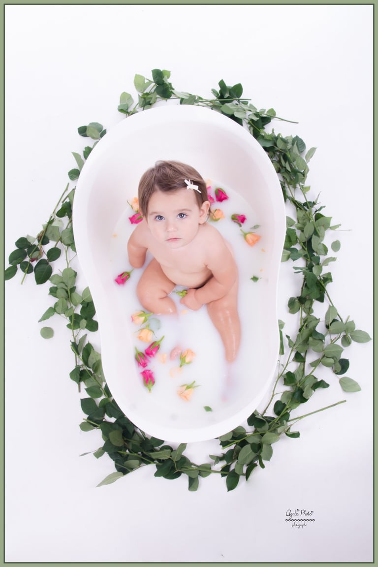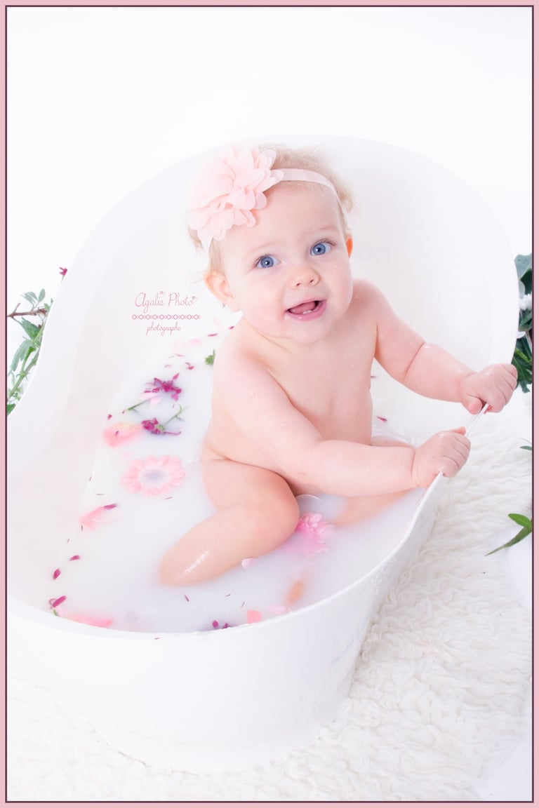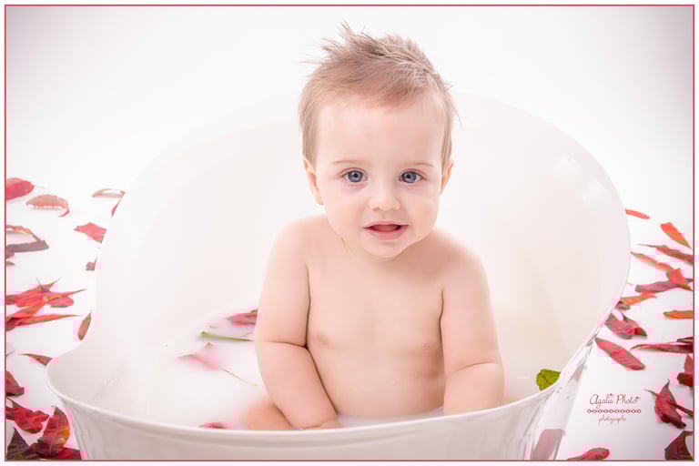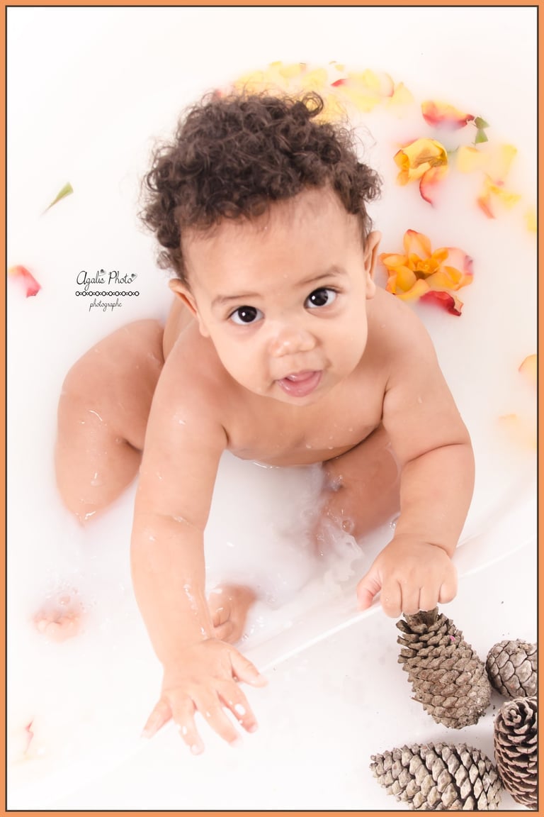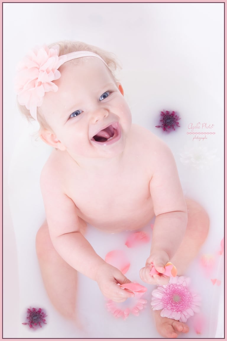 Les photos "bain de lait" c'est avant tout un moment de partage et de jeux avec bébé afin de capturer des jolies expressions. La séance est proposée dès que votre bébé tient BIEN assis et jusqu'à 3 ans environ. Aussi bien pour les petits garçons que pour les petites filles. La séance dure 1 heure environ entre votre arrivée et le rhabillage de bébé.