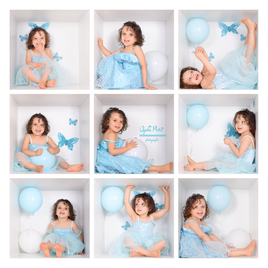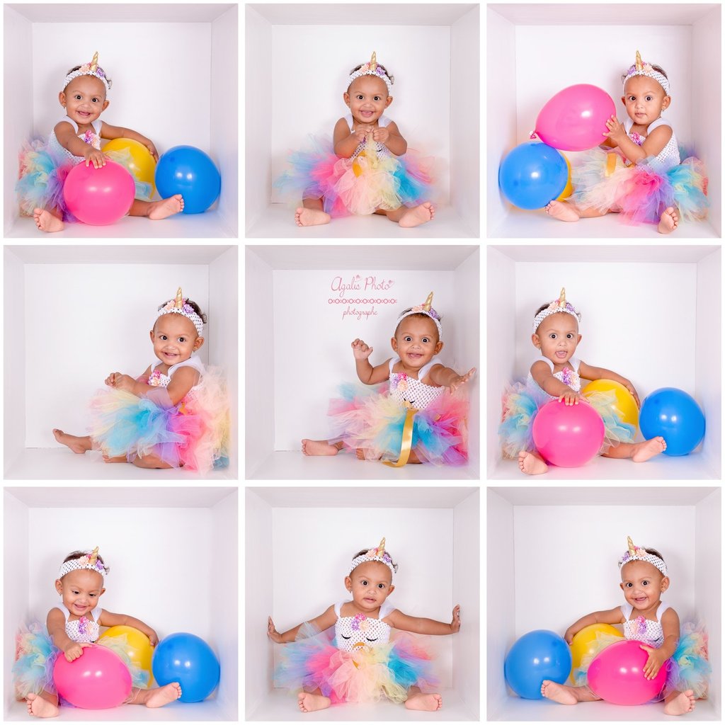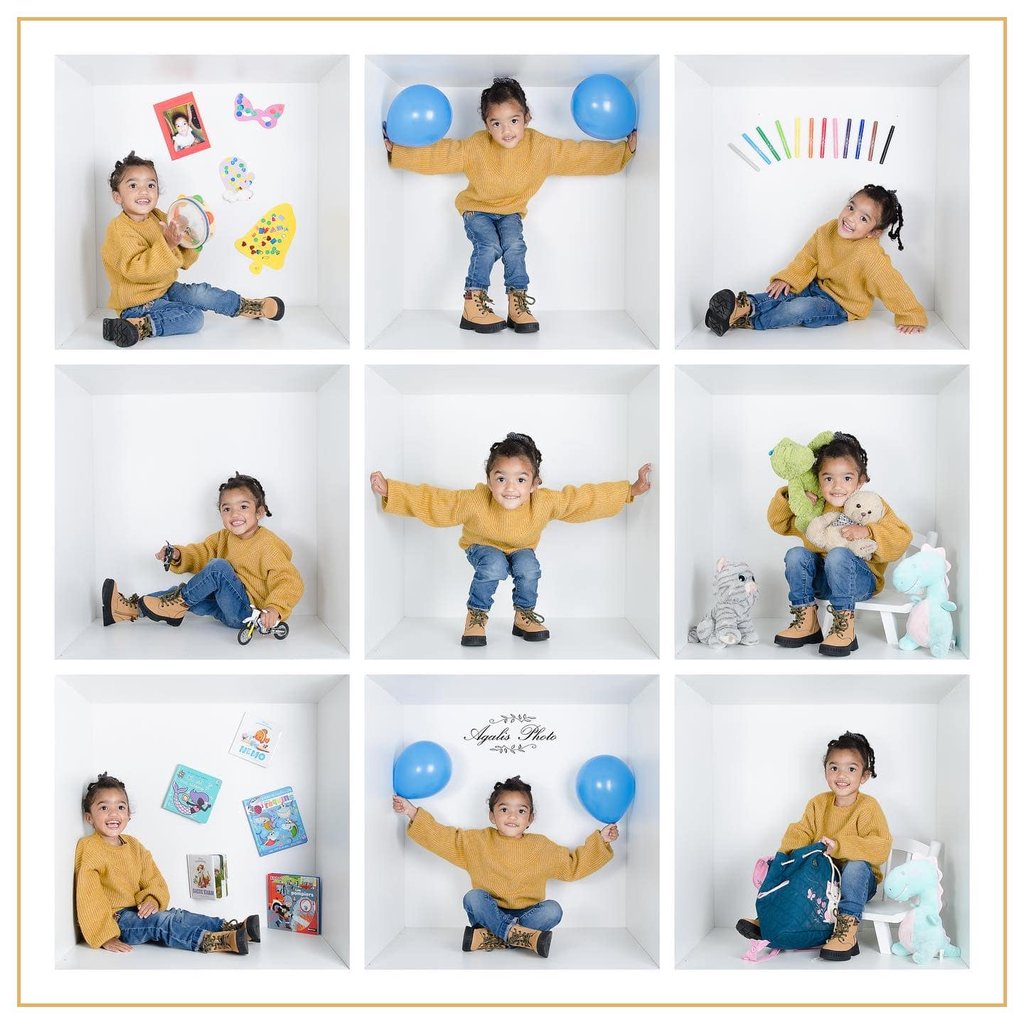 Les photos dans la box c'est un moment de partage et de jeux avec bébé afin de capturer des jolies expressions. La séance est proposée vers 1 an pour que bébé puisse avoir une tenue debout, assise, sur le ventre,